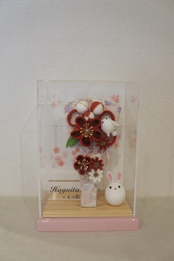 近年人気の「つまみ細工」を使用した羽子板飾りです