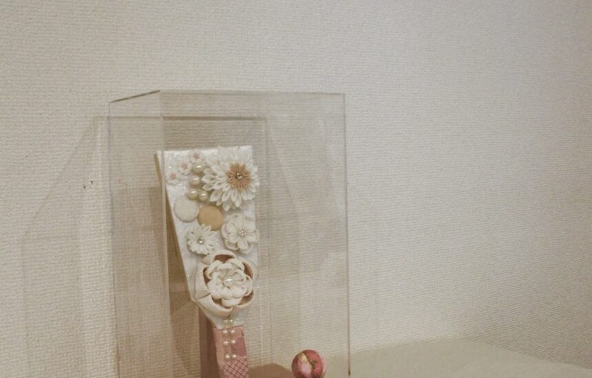 こちらもつまみ細工のお飾りをカンザシとして使用できる羽子板です🌷