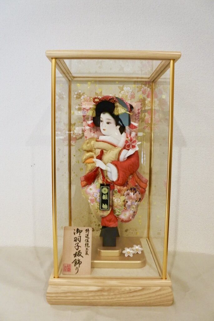 ガラスケース入りの羽子板も白木のケースが人気です🌼伝統的な振袖羽子板ですが、お顔は現代的な可愛らしい面相が特徴です🍋