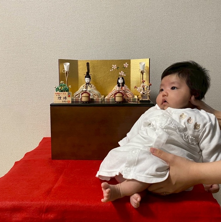今年はおひなさま飾りと同じくらいの赤ちゃんですが、来年のひなまつりでは、おひなさまの横に座って兄妹、姉妹のような写真が撮れますね。今から楽しみです。