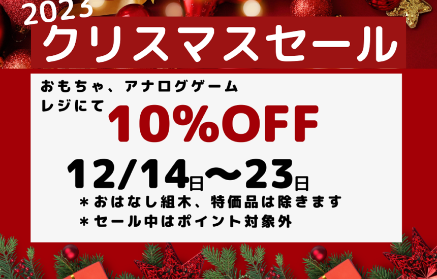 今年も店頭のおもちゃ&アナログゲームを10%OFFにてご奉仕致します。(特別価格品及び、おはなし組木を除きます)